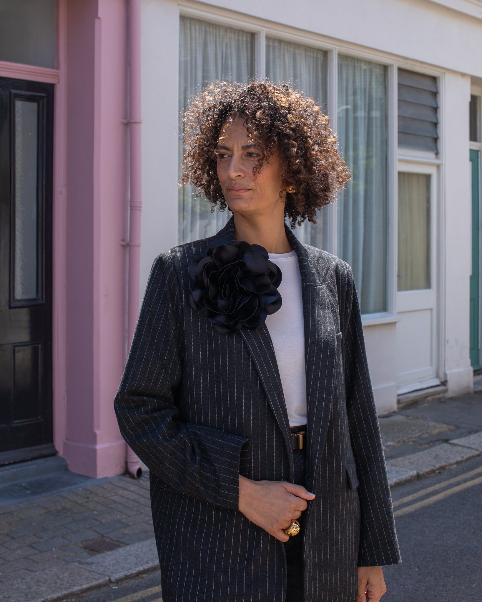 Add a touch of elegance to your outfit with the Hove Flower Broach. This large satin flower is perfect for dressing up with a statement for any occasion. The pin and clip back ensure a secure hold onto fabric.