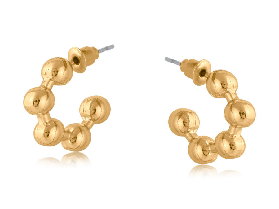 Handcrafted in gold or silver plating, these small textured hoops combine a high-shine finish with a modern, intricate design. A refined accessory that adds a touch of elegance to any outfit. At least 50% of the brass used in the jewellery we make is recycled from leftover/overhead brass. All posts are hypoallergenic made from surgical steel.