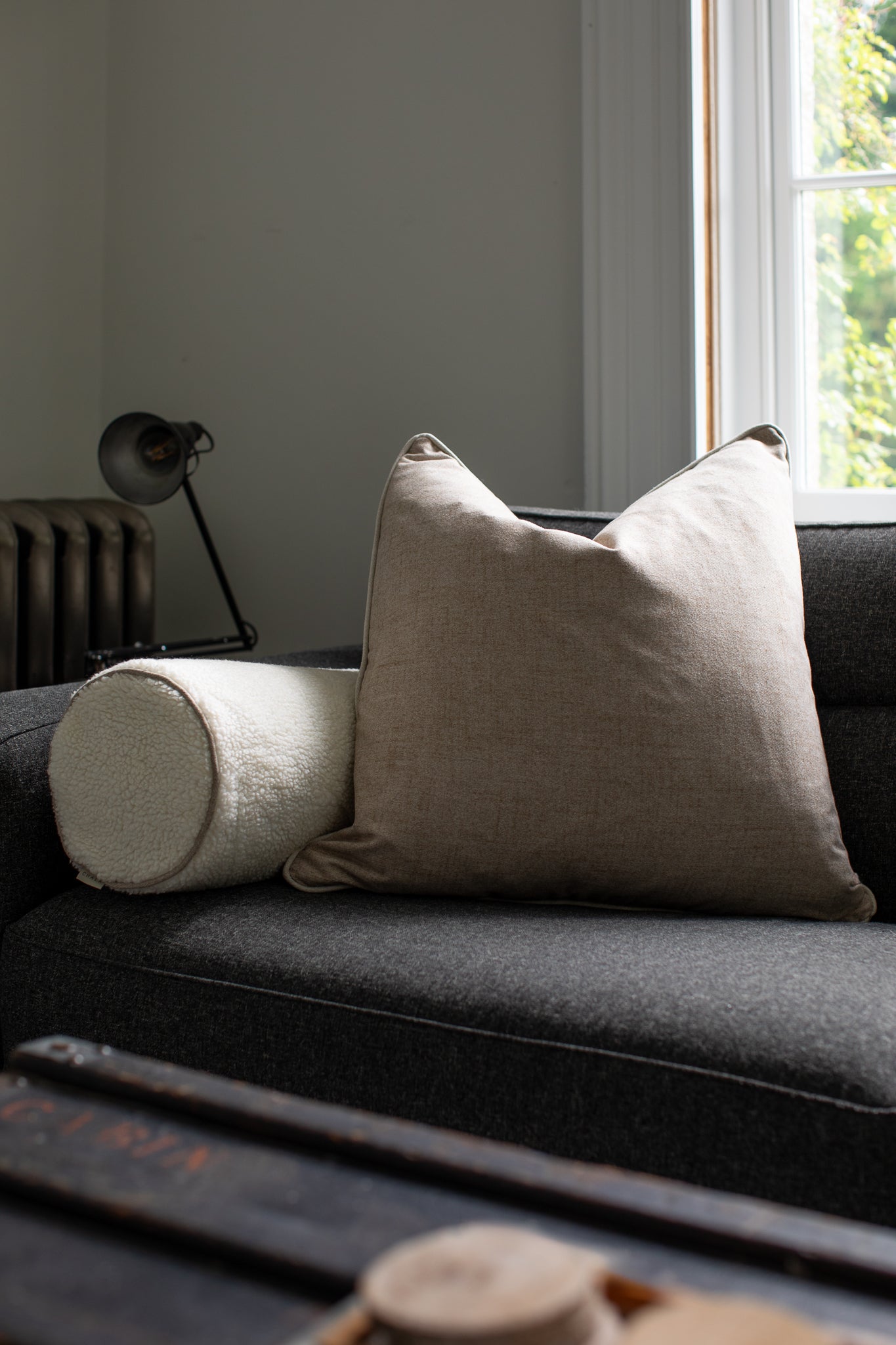 Elevate your interior with our Rob Bolster Cushion, made with plush sherpa fabric and finished with contrasting piping, this plump bolster cushion is perfect for adding a cosy touch to your bed or sofa. Filled with a feather pad making it the perfect plump and comfortable addition to any room.
