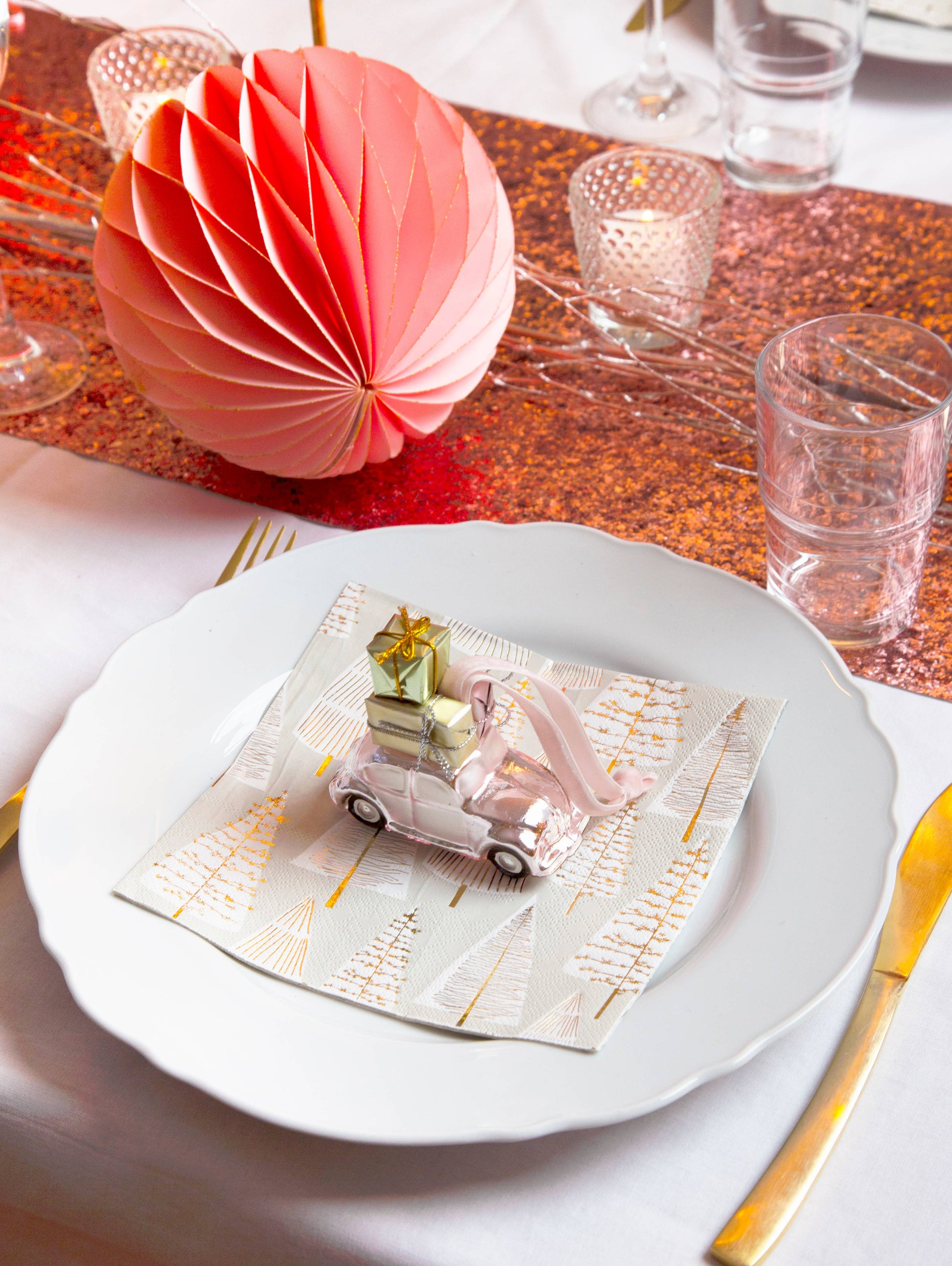 In wintry white and silver, these disposable napkins feature a forest of trees to add a sophisticated feel to any table. Use as Christmas napkins, for a winter Wedding, New Years Eve or dinner party. To be more eco-friendly these napkins included an extra napkin at the front of pack to throw away after keeping the others clean so that no plastic has been used in the packaging. Contains 20 paper napkins + 1 extra Size - 33cm x 33cm unfolded